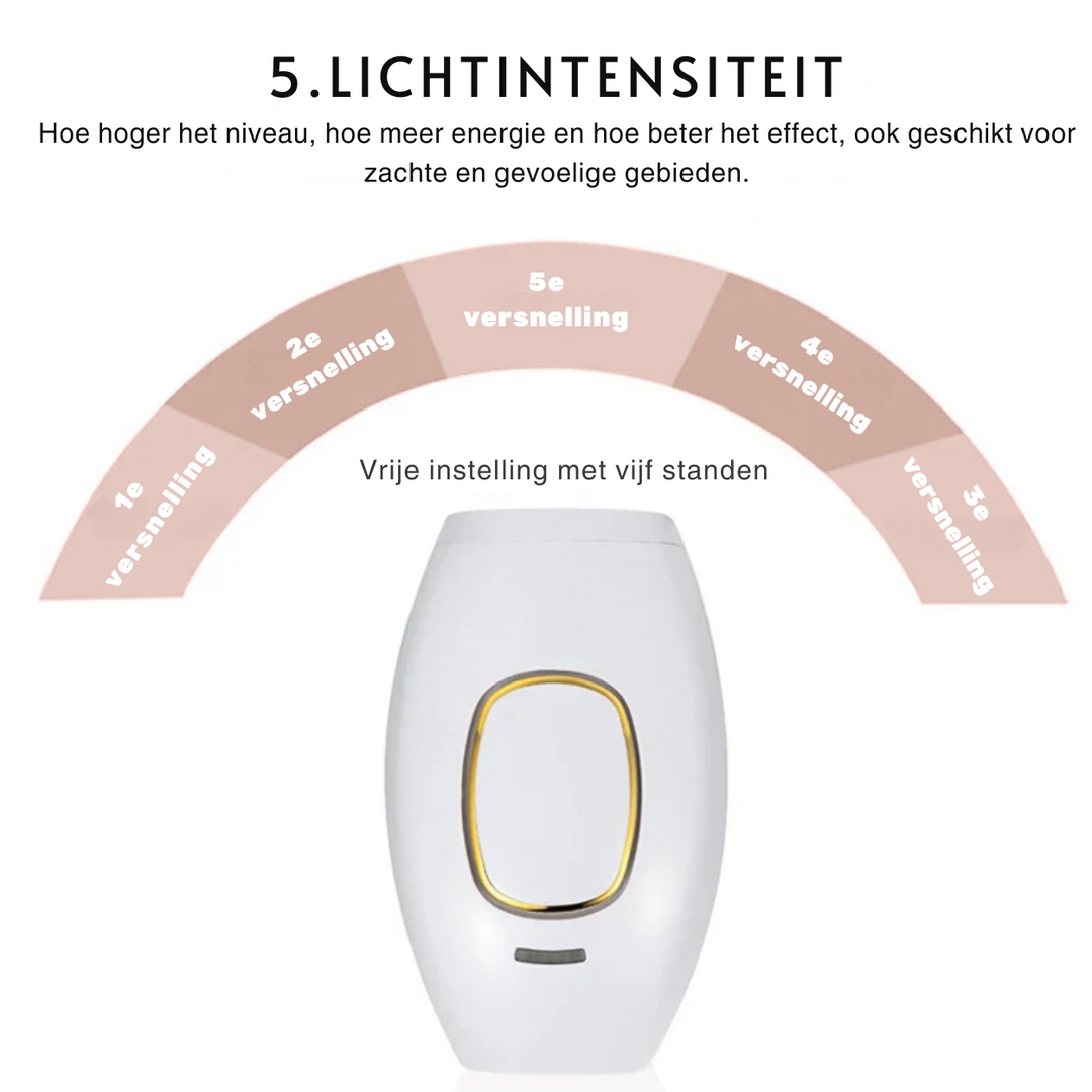 Zařízení je snadno použitelné a nabízí různé úrovně intenzity, aby vyhovělo potřebám vaší pokožky. Jemná světelná terapie poskytuje příjemný pocit během použití, bez bolesti nebo nepohodlí.